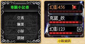 - 想退出小队时,只要用鼠标左键点选在画面右上角小队资讯中自己名字后面的X即可退出小队